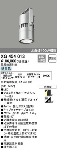 ●商品の関連商品や機能説明などPC用ページに切り替えてご確認下さい 下記リンクから移動出来ます↓↓↓↓↓↓ [ 人気 商品 検索 画面 はこちらから ] ●関連商品 高天井用ハイパワースポットライトXG454009 灯具本体XA453011 電源装置電源装置別置型 昼白色 ナロー配光[100-242V] 防雨型非調光 水銀灯400Wクラス120,265円高天井用ハイパワースポットライトXG454010 灯具本体XA453011 電源装置電源装置別置型 電球色 ナロー配光[100-242V] 防雨型非調光 水銀灯400Wクラス120,265円高天井用ハイパワースポットライトXG454011 灯具本体XA453011 電源装置電源装置別置型 昼白色 ミディアム配光[100-242V] 防雨型非調光 水銀灯400Wクラス120,265円高天井用ハイパワースポットライトXG454012 灯具本体XA453011 電源装置電源装置別置型 電球色 ミディアム配光[100-242V] 防雨型非調光 水銀灯400Wクラス120,265円高天井用ハイパワースポットライトXG454013 灯具本体XA453011 電源装置電源装置別置型 昼白色 ワイド配光[100-242V] 防雨型非調光 水銀灯400Wクラス120,265円 高天井用ハイパワースポットライトXG454014 灯具本体XA453011 電源装置電源装置別置型 電球色 ワイド配光[100-242V] 防雨型非調光 水銀灯400Wクラス120,265円高天井用ハイパワースポットライトXG454015 灯具本体XA453011 電源装置電源装置別置型 昼白色 拡散配光[100-242V] 防雨型非調光 水銀灯400Wクラス117,510円高天井用ハイパワースポットライトXG454016 灯具本体XA453011 電源装置電源装置別置型 電球色 拡散配光[100-242V] 防雨型非調光 水銀灯400Wクラス117,510円オプションガードXA453010 9,914円